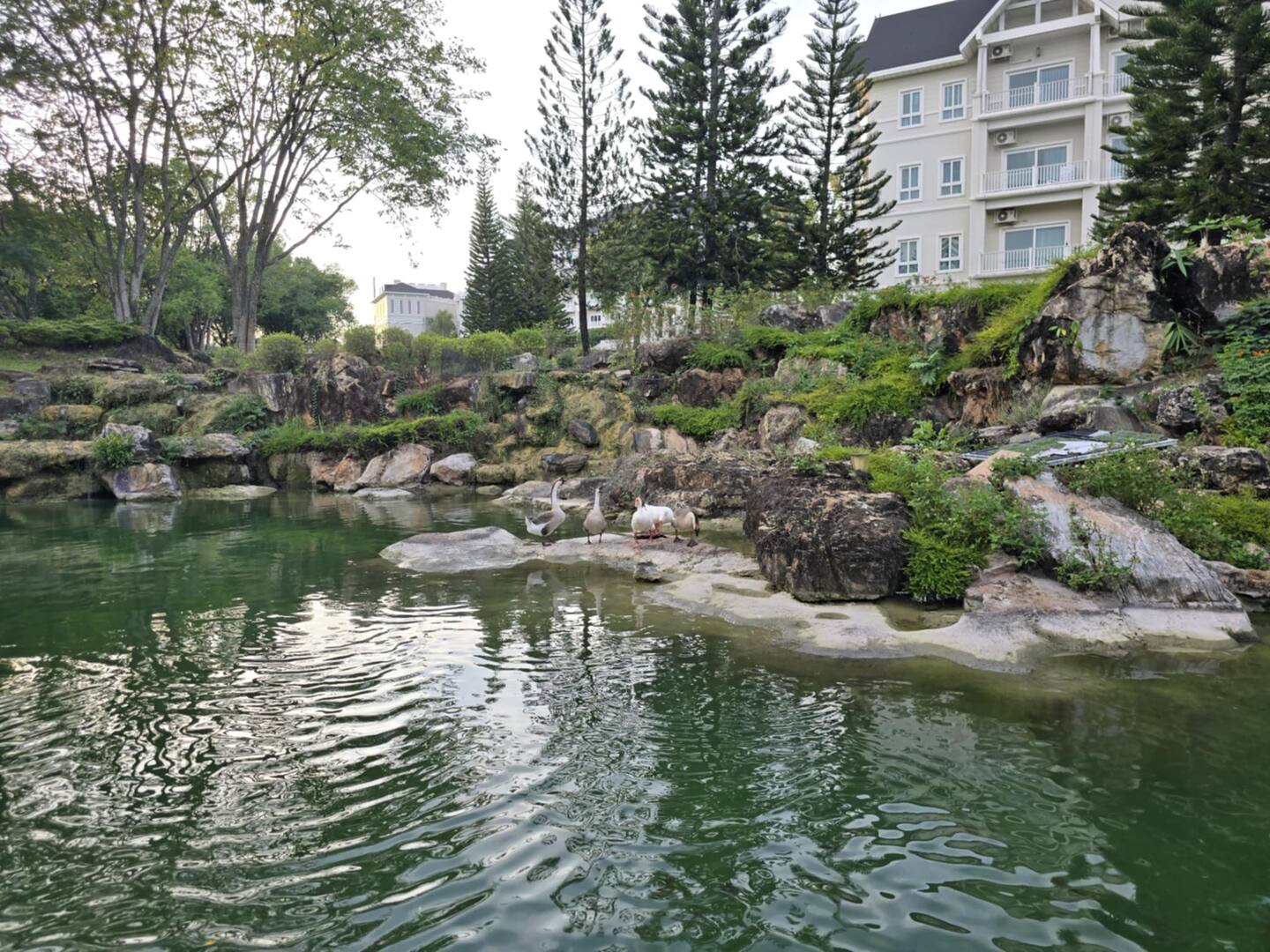 “ทำเลที่งดงาม โอบล้อมด้วยธรรมชาติที่สมบูรณ์และอากาศบริสุทธิ์ ให้ความรู้สึกเงียบสงบและผ่อนคลายสำหรับผู้มาเยือนภายในห้องพักตกแต่งอย่างพิถีพิถัน มีหน้าต่างบานใหญ่ที่เปิดรับวิวทิวเขาและป่าไม้โดยรอบ"